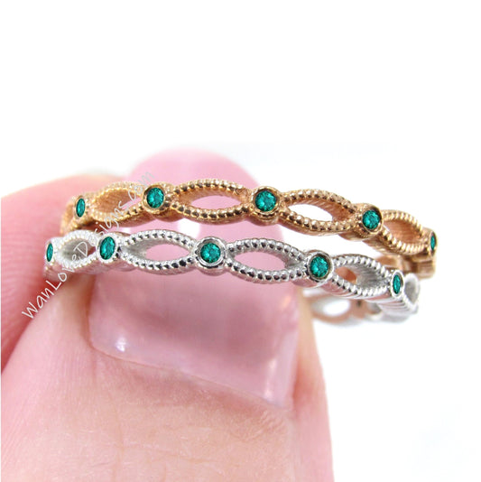 Fascia di corda strutturata Fascia vintage in oro bianco Fascia Art Déco Fede nuziale impilabile Fascia di smeraldo Fascia di fidanzamento Fascia di anniversario 14K Oro rosa