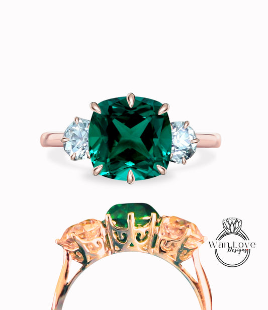 Anello di fidanzamento con smeraldo e Moissanite 3 gemme OMC OEC taglio antico 14k 18k bianco giallo oro rosa platino anniversario di matrimonio personalizzato
