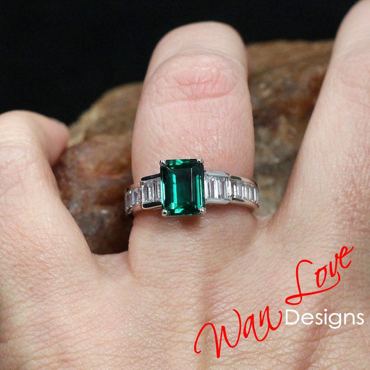 Anello di fidanzamento Baguette con smeraldo Art Déco con smeraldo Moissanite, 3 ct, 9 x 7 mm, regalo personalizzato per anniversario di matrimonio