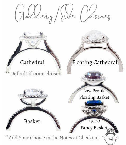 Anello di fidanzamento Asscher Halo con smeraldi e diamanti, Cattedrale quadrata galleggiante, personalizzato, oro 14kt 18kt, platino, WanLoveDesigns