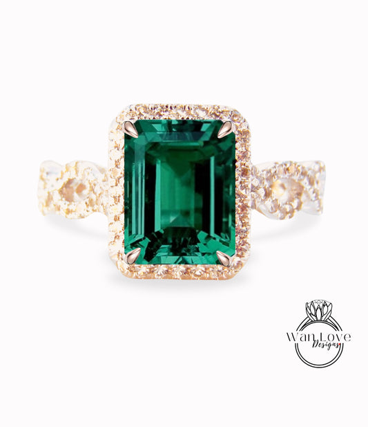 Smeraldo e diamante cornice anticata con cornice per anello di fidanzamento cesto vintage Art Déco 14k 18k bianco giallo oro rosa-platino-matrimonio personalizzato