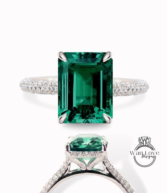 Anello di fidanzamento con diamante smeraldo stile celebrità da 5 ct Anello con taglio smeraldo Anello di fidanzamento con anello di fidanzamento per anniversario di matrimonio nascosto con diamanti laterali
