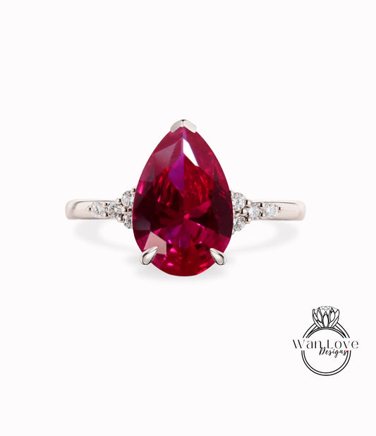 Anello di fidanzamento con rubini e diamanti con taglio a pera, Cattedrale di cesto, 14k 18k bianco giallo oro rosa-platino-anniversario di matrimonio personalizzato,WanLoveDesigns