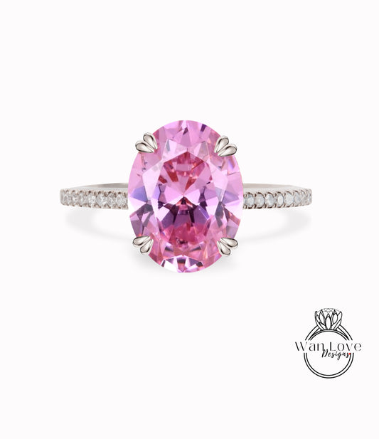 Anello di fidanzamento con zaffiro rosa e pera di diamanti, cestino della cattedrale, oro rosa giallo bianco 14k-18k-matrimonio personalizzato in platino, WanLoveDesigns