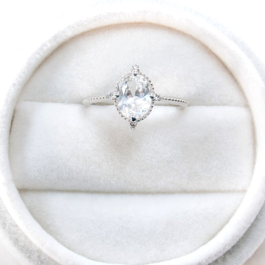 Anello di fidanzamento Milgrain ovale con zaffiro bianco e diamante, oro rosa giallo bianco 14k 18k, platino, personalizzato, matrimonio, stella polare, WanLoveDesigns