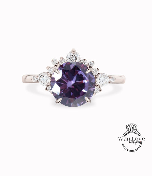 Anello di fidanzamento Half Halo con zaffiri e zaffiri viola alessandrite Diamanti Cluster unico Anello in oro rosa bianco Promessa regalo per anniversario da donna