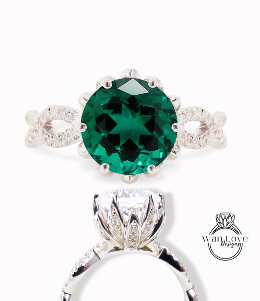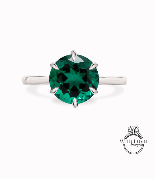 Anello di fidanzamento rotondo smeraldo, Cattedrale, Solitario, Personalizzato, Matrimonio, 4 punte doppie, Regalo di anniversario, Impegno, Proposta, WanLoveDesigns
