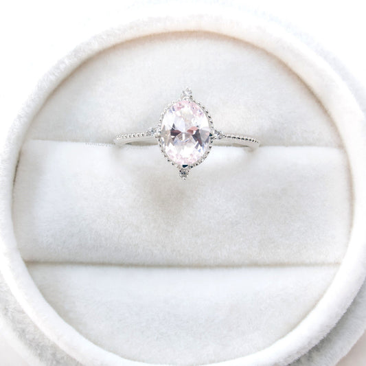 Anello di fidanzamento ovale Milgrain con zaffiro rosa chiaro e diamanti, oro 14k 18k, platino, personalizzato, matrimonio, stella polare, WanLoveDesigns