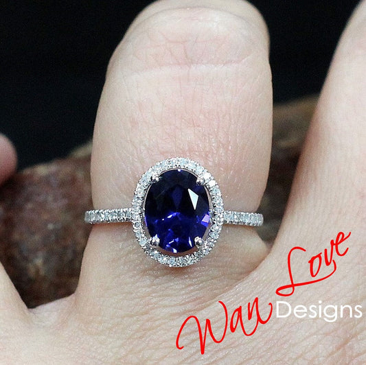 Anello di fidanzamento con zaffiro blu e diamante ovale Halo art deco 3ct ovale zaffiro diamante alone anniversario di matrimonio promessa anello regalo per lei
