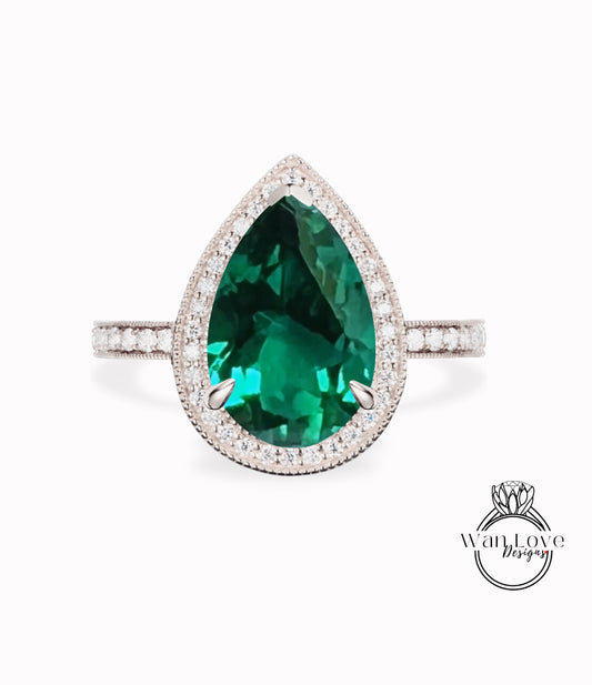 Anello di fidanzamento vintage Anello smeraldo oro rosa Anello con diamante taglio pera milgrain halo anello art deco anello anniversario di matrimonio anello nuziale