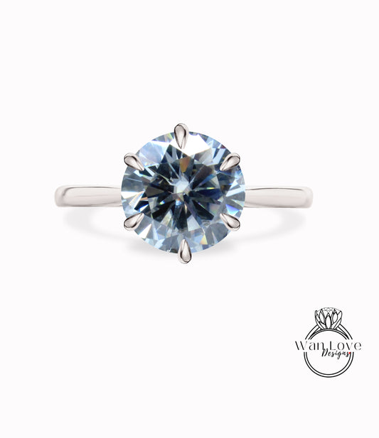Anello di fidanzamento Moissanite grigio Solitario 6 poli affusolato anello in oro anello a taglio rotondo anello vintage anello art deco anello di promessa moissanite