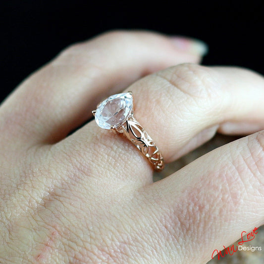 Anello di fidanzamento solitario in filigrana con pera e zaffiro bianco Realizzato su misura, anello di impegno regalo per anniversario di matrimonio, regalo di impegno