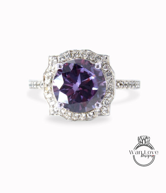Anello di fidanzamento con diamante colore alessandrite zaffiro viola, cornice con castone antico, oro rosa giallo bianco 14k 18k, platino, personalizzato, matrimonio