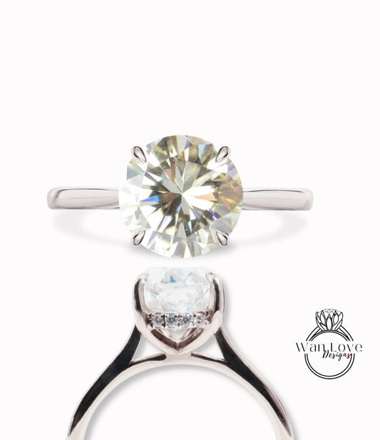 Anello di fidanzamento con Moissanite Champagne a taglio rotondo, in oro bianco, con diamanti, con aureola laterale, in stile art deco, quasi eternità, con anello nuziale con diamanti, con aureola