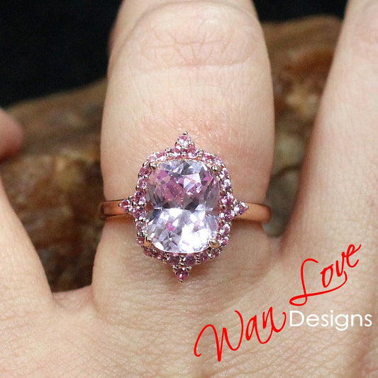 Anello di fidanzamento vintage con cuscino allungato in zaffiro rosa chiaro, anello in oro rosa, anello art deco Anello con cuscino allungato floreale, anello anniversario