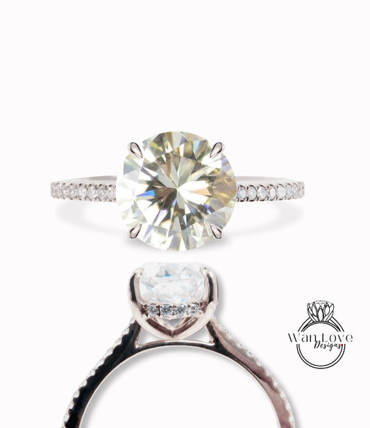 Diamond Halo Scalloped Milgrain Shank band Ring Radiant Engagement Ring Art Deco Emerald Gray Halo Ring wedding anniversary bridal promise ring