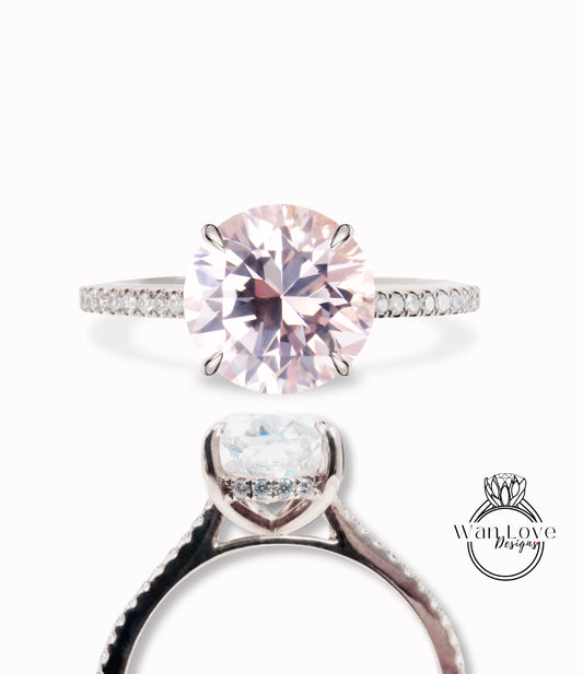 Anello di fidanzamento vintage con zaffiro rosa chiaro taglio rotondo in oro rosa con moissanite/diamante halo anello art deco polo promessa di matrimonio anello anniversario
