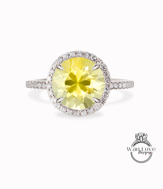 Anello di fidanzamento Halo con zaffiro giallo e diamante rotondo 14k 18k bianco giallo oro rosa-platino-su misura-anniversario di matrimonio