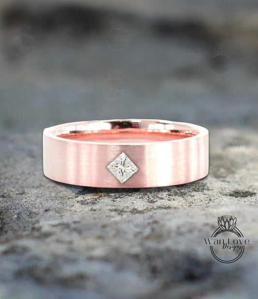 Fede nuziale da uomo con taglio principessa Baguette con diamanti, fede nuziale in oro massiccio 10/14k/18k, fede nuziale in oro da uomo, fede nuziale in Moissanite