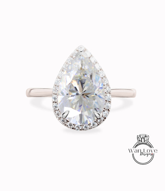 Pear shaped Moissanite engagement ring vintage Unique tapered band diamond halo engagement ring white gold wedding Bridal gift for women