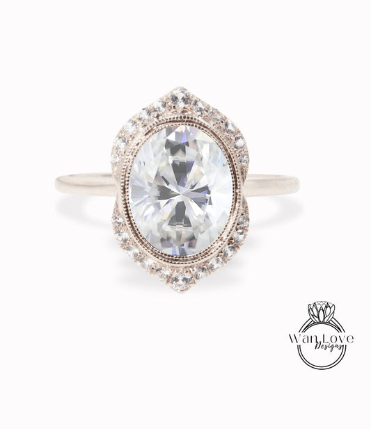Vintage Oval Shape DEF Moissanite Engagement Ring Art Deco Diamond bezel halo Ring antique ring Unique Bridal Ring Anniversary Promise Ring