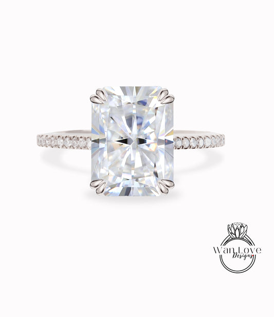 Anello di fidanzamento radiante in moissanite Anello di fidanzamento minimal in oro rosa antico con fascia di diamanti Art Deco Delicato anello nuziale Anello di promessa di anniversario