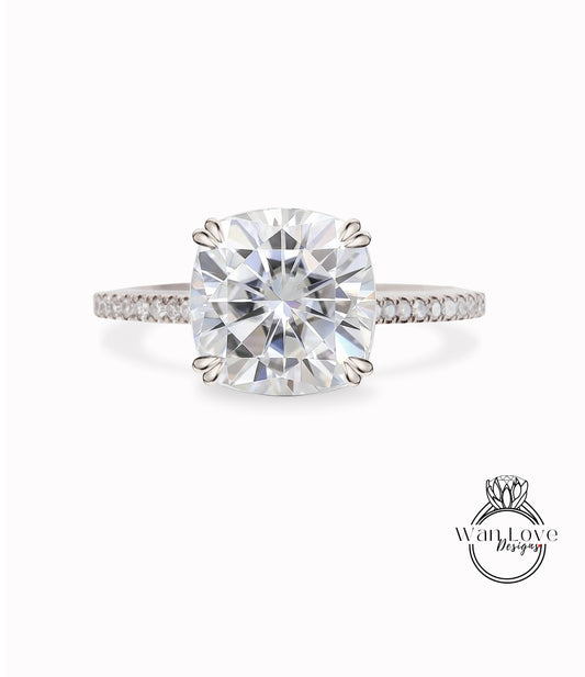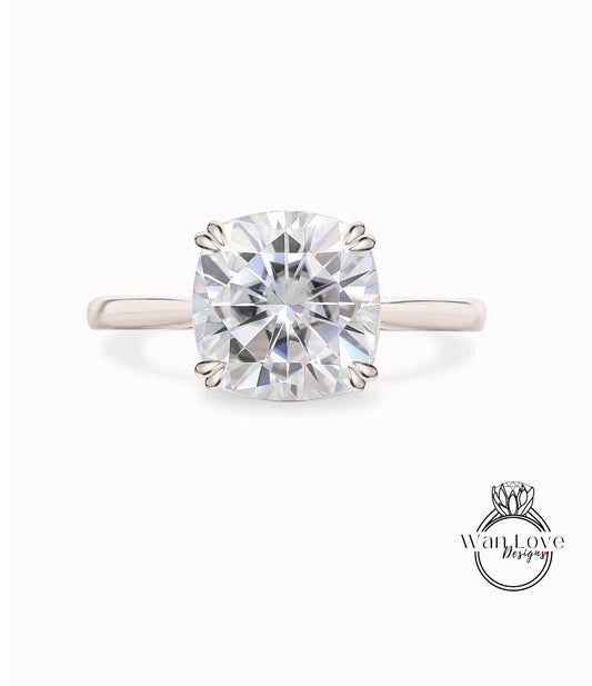 Cuscino Anello di fidanzamento Moissanite in oro bianco Cuscino Anello Moissanite con punta solitario vintage Anello di anniversario di promessa nuziale di nozze unico