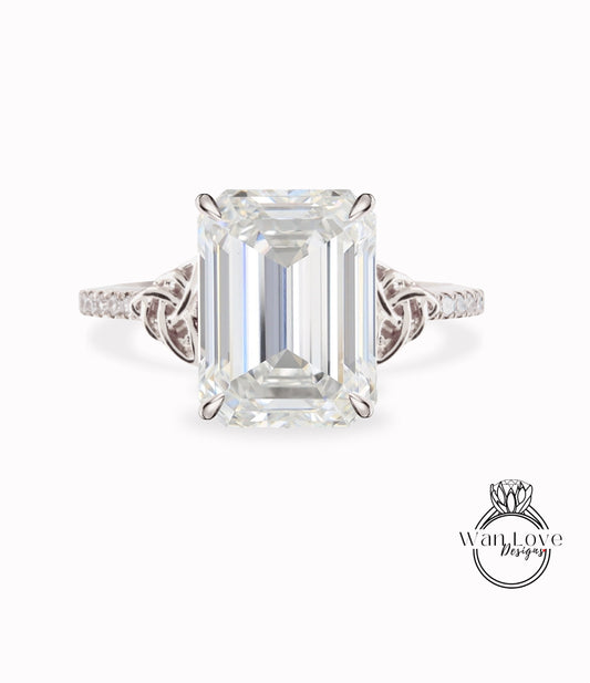 Anello di fidanzamento con smeraldo e diamante Moissanite con nodo celtico Anello con mezza eternità con diamante celtico Moissanite Anello con promessa di anniversario nuziale radiante
