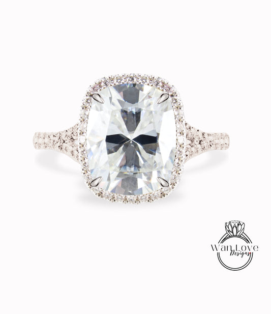 Anello di fidanzamento allungato in Moissanite con taglio a cuscino, in oro, con diamante vintage, anello di fidanzamento con aureola, da donna, per matrimonio, mezza eternità, anniversario nuziale