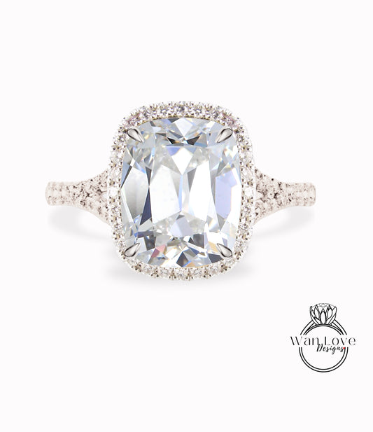 Moissanite e diamante Halo Anello-Antico lunetta cornice Anello di fidanzamento-Anello Vintage-Anello Halo geometrico Personalizzato-Nozze-Anniversario