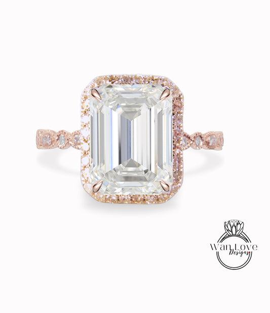 Anello Halo con diamante smeraldo Anello di fidanzamento con diamante Moissanite e Art Deco Anello Halo in oro rosa radiante, anniversario di matrimonio, anello di promessa nuziale