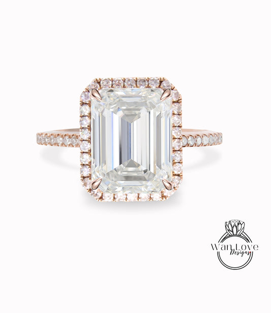 Anello Halo con diamante smeraldo Anello di fidanzamento con diamante Moissanite e Art Deco Anello Halo in oro rosa radiante, anniversario di matrimonio, anello di promessa nuziale