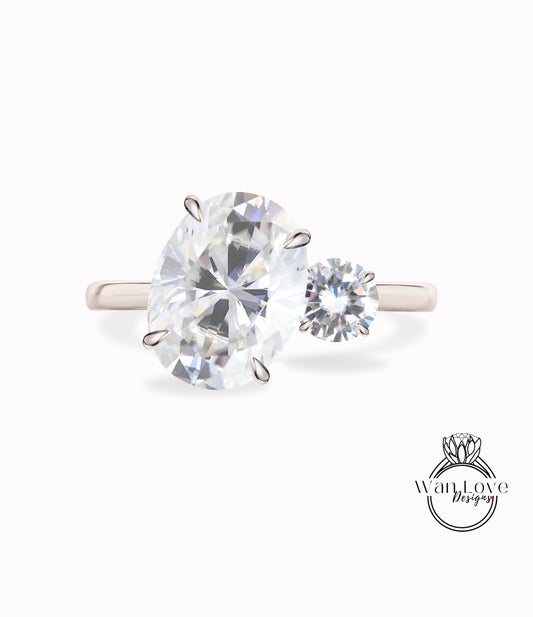 Anello di fidanzamento con Moissanite a taglio ovale, Anello di fidanzamento ovale con ghiaccio tritato, anello con Moissanite ovale e rotondo, Anello di Ariana Grande.