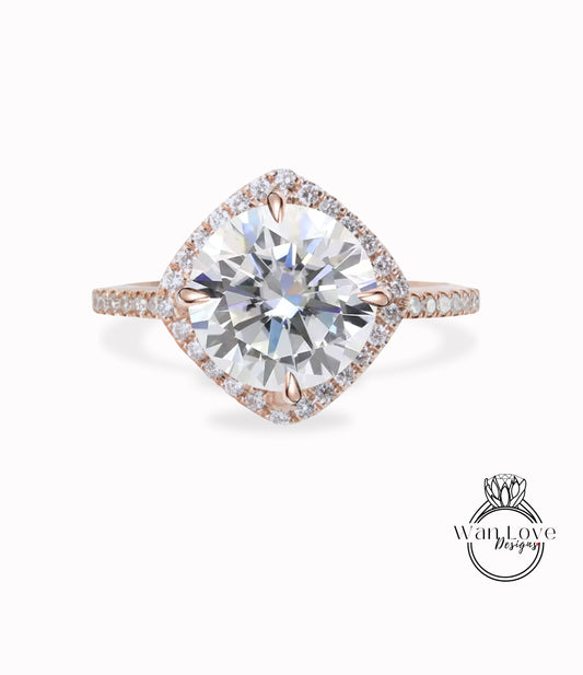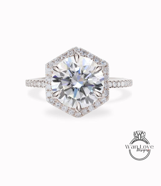 Anello Halo con diamante esagonale Anello Moissanite con diamante a taglio rotondo Anello di fidanzamento Art Deco in oro rosa vintage Halo Anello da sposa con promessa nuziale