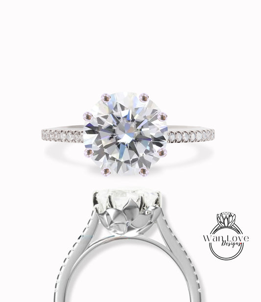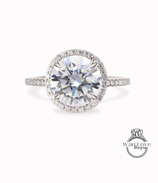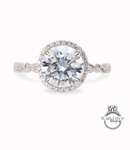 Anello di fidanzamento con moissanite e diamante smerlato, anello rotondo Halo Moissanite, anello nuziale Milgrain Vintage Diamond Moissanite, personalizzato