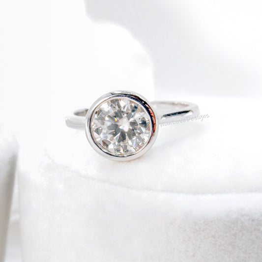 Round cut Moissanite engagement ring Vintage bezel set women art deco ring unique solitaire ring anniversary bridal ring Birthstone ring