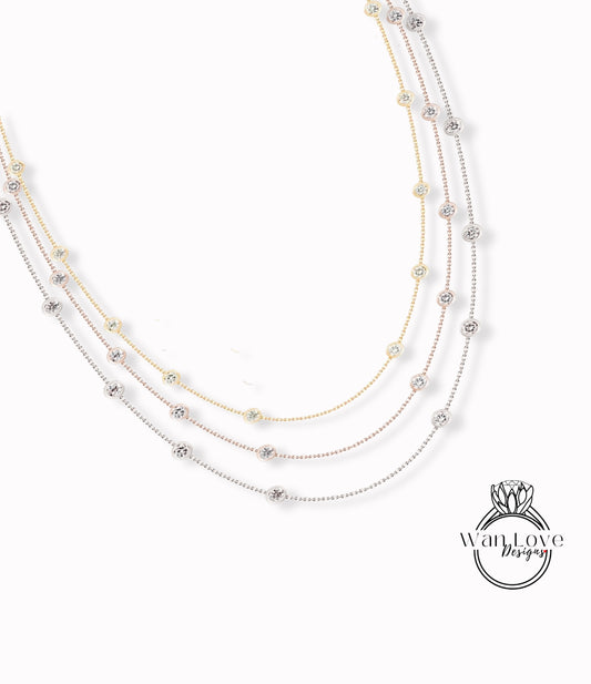 Collana con diamanti tagliati a misura / Collana con 10 stazioni di diamanti / Collana di diamanti in oro rosa 14k / Collana con set di castoni Birthstone da 1 carato Regalo lei