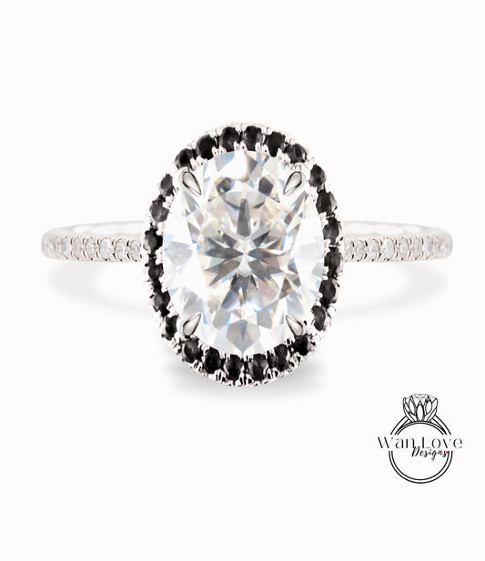 Pavone zaffiro diamante ovale anello di fidanzamento trapezoidale a mezza luna, 3ct, 9x7mm, personalizzato, 14k 18k bianco giallo oro rosa, platino, matrimonio, regalo