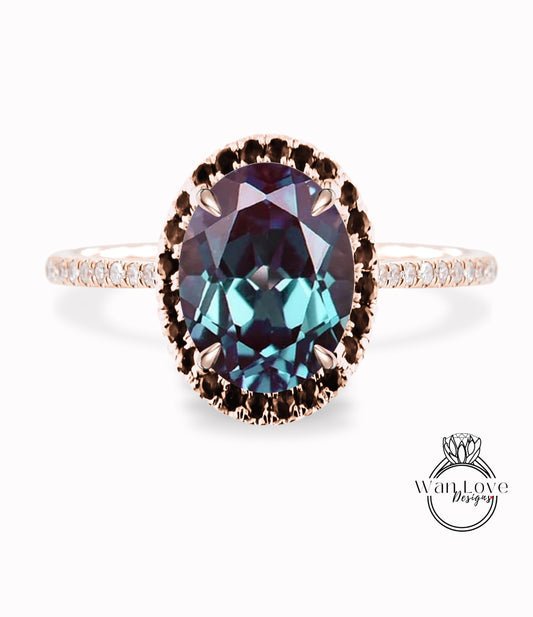 Anello di fidanzamento Halo ovale Alexandrite, Anello di fidanzamento Halo ovale Moissanite, Anello floreale a grappolo ovale in oro rosa, Anello di diamanti anniversario