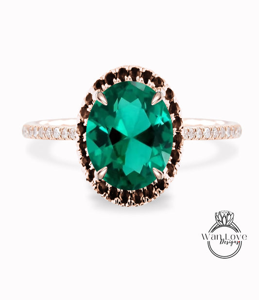 Anello di fidanzamento con smeraldo ovale Halo, Anello di fidanzamento Moissanite ovale Halo, Anello floreale a grappolo ovale in oro rosa, Anello con diamante anniversario