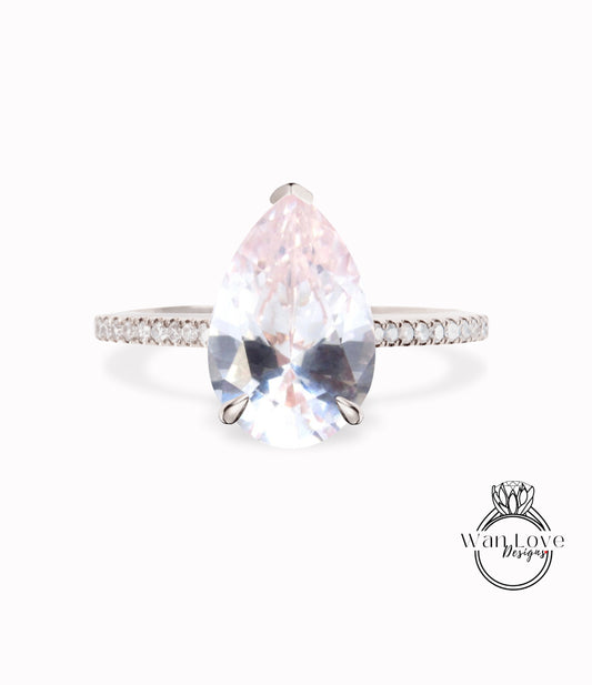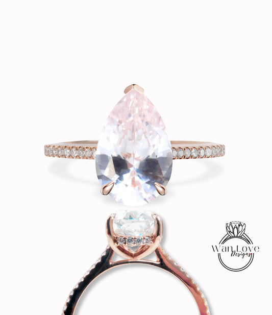 Anelli di pera con zaffiro rosa chiaro e diamanti, cesto della cattedrale, anello di fidanzamento personalizzato, matrimonio, oro 14kt 18kt, platino, WanLoveDesigns