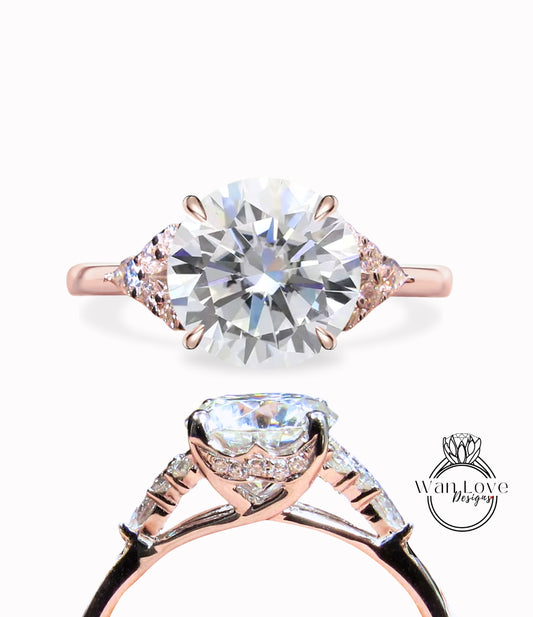 Anello di fidanzamento vintage con Moissanite e diamante Anello rotondo con artiglio Anello antico con gambo diviso pera Art deco regalo di anniversario di matrimonio in oro rosa