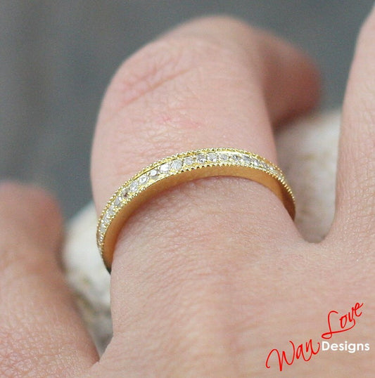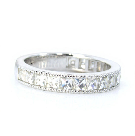 Fede nuziale in Moissanite taglio francese Set di canali Milgrain 3/4 Quasi Eternità 1,7 ct, gemme da 2,5 mm, Anello impilabile, Personalizzato, Oro bianco-Pronto per la spedizione