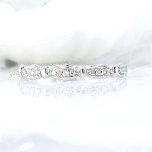 Saldi Pronto per la spedizione-Fede nuziale impilabile Half Eternity con diamante Milgrain-Argento 925 rodiato giallo oro rosa-Fidanzamento