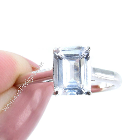 Anello solitario con zaffiro bianco taglio smeraldo da 2 ct Cattedrale 4 poli con zaffiro bianco Anello di fidanzamento Anello di promessa nuziale, Anello pronto per la spedizione