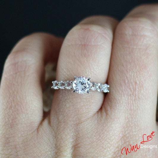 Pronto per la spedizione Anello di fidanzamento solitario in filigrana Milgrain con zaffiro bianco, taglio rotondo, 8 punte, 2 ct, 8 mm, argento rodiato, regalo per anniversario di matrimonio