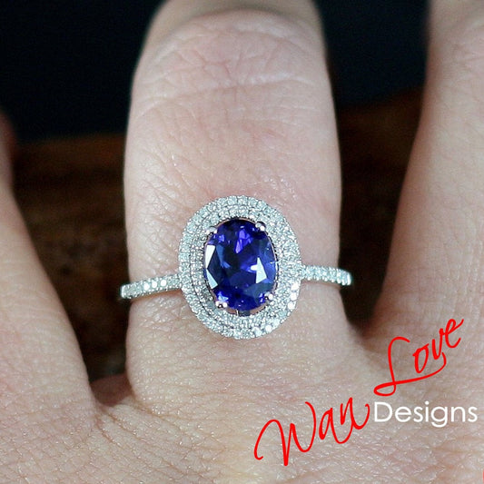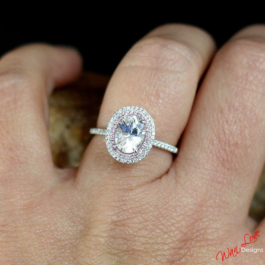 Bianco e rosa zaffiro ovale 2 doppio Halo anello di fidanzamento anello art deco da 2 ct anello nuziale vintage anello nuziale anniversario regalo cestino-pronto per la spedizione