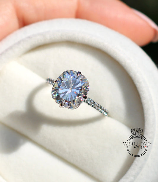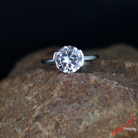 Anello di fidanzamento solitario con zaffiro bianco e semi castone, taglio rotondo, 3 ct, 9 mm, anello di fidanzamento da sposa rotondo, regalo di anniversario, pronto per la spedizione
