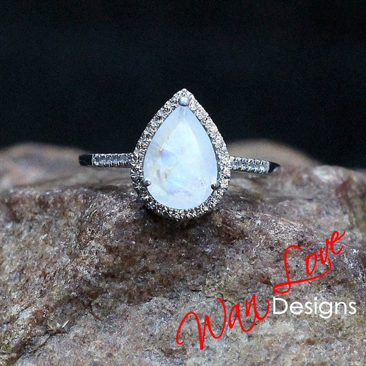 Anello di fidanzamento Halo con pietra di luna e zaffiro bianco, anello di fidanzamento vintage da 2,5 ct, anello nuziale per matrimonio, anello di promessa, regalo di anniversario, pronto per la spedizione