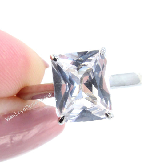 Anello di fidanzamento con smeraldo solitario con zaffiro bianco-4ct carati-10x8mm-argento 925 con rodio-anniversario di matrimonio personalizzato-pronto per la spedizione